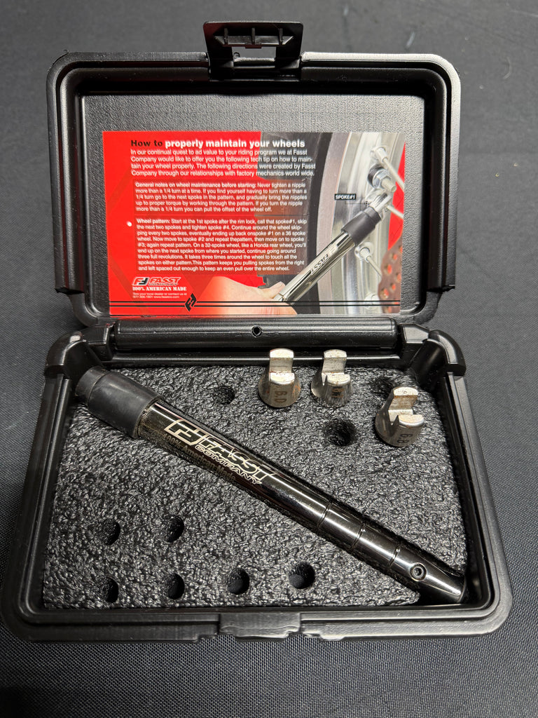 We introduced the Spoke Torque Wrench, an industry first, in the summer of 1998. At that time wheel maintenance was uncharted territory and we quickly realized the value of providing an even pull throughout the entire wheel. We manufacture the wrench in-house in our machine shop, it's 100% American Made by riders for riders. After assembly each wrench is tested and calibrated to ensure accuracy and consistency.